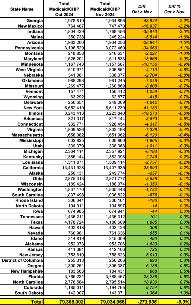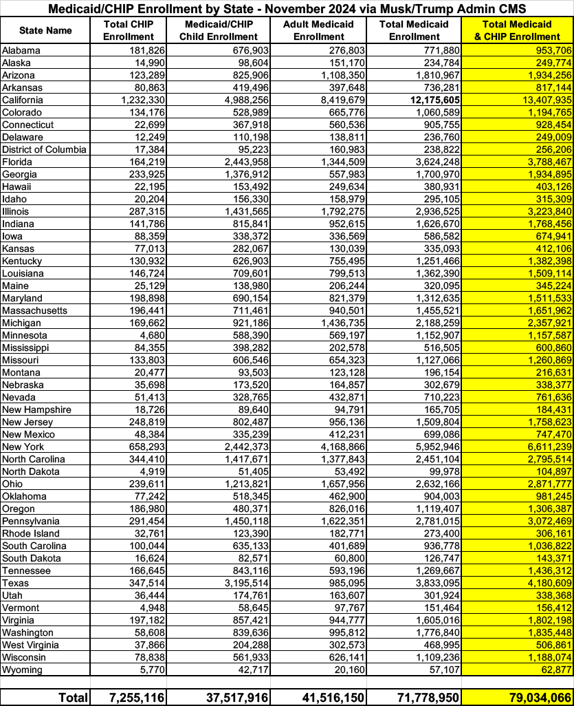 Musk/Trump Admin finally posts Nov. 2024 Medicaid/CHIP enrollment report: 79.0M, down 0.3% from Oct.