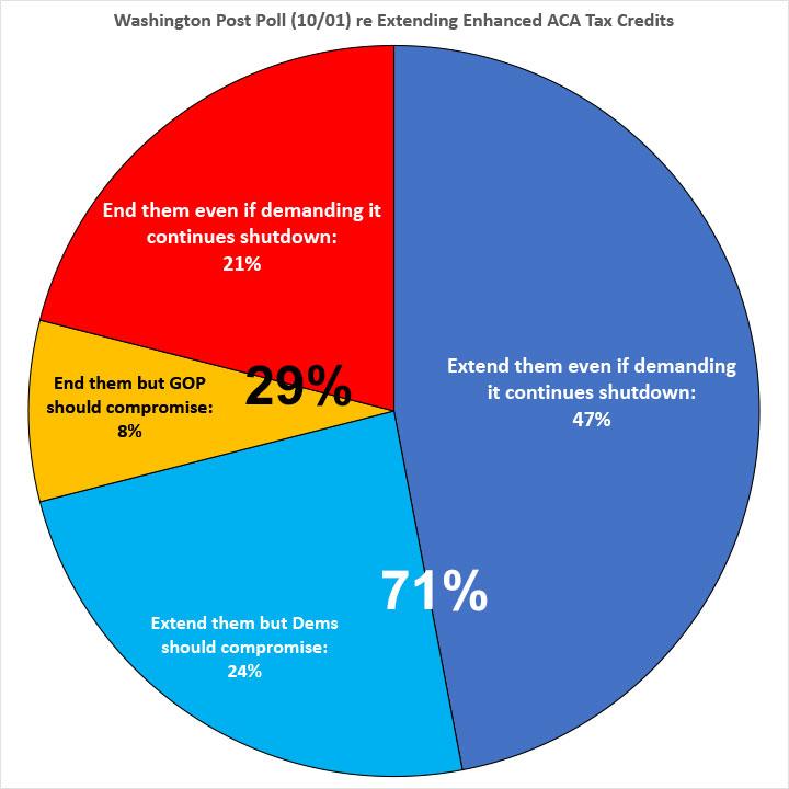 The KFF poll was taken a week before the actual federal government shutdown started, which is an important factor to consider (there's a big difference between something theoretically happening and something which has actually already happened). Even so, this strongly underscores the support for extending the tax credits among the public...even among die-hard MAGA Republicans.