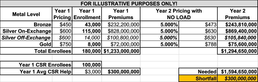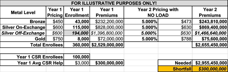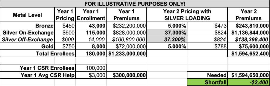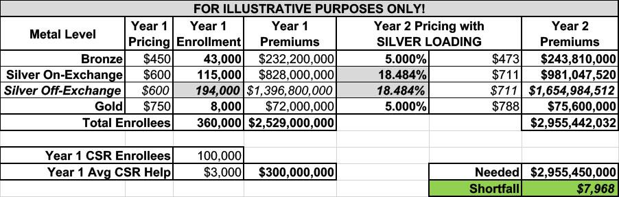 If I go with normal Silver Loading, the impact is more diluted than it was before, because you're spreading the CSR load across an additional 180,000 Silver plan enrollees; Silver plans only go up 18.5% instead of 37.3%.