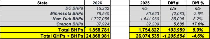 If you combine the BHPs w/the QHPs, enrollment is down around 1.2 million or 4.6% vs. January 2025.