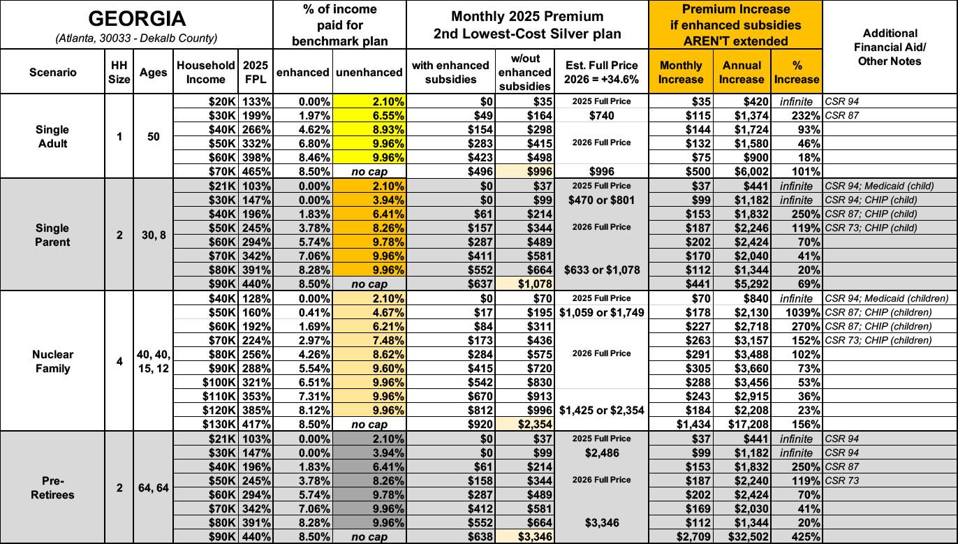 How much more will ~1.44 MILLION GEORGIA residents pay if the improved #ACA subsidies expire? (updated)