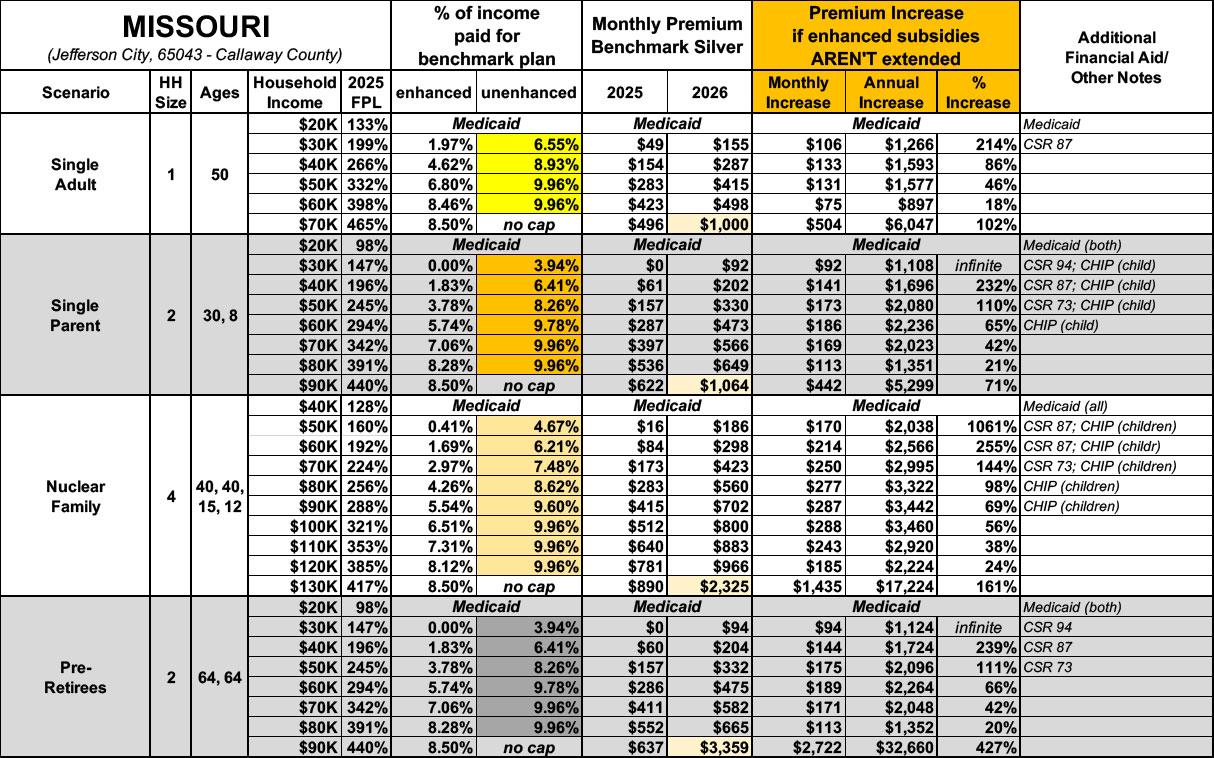I decided to run the numbers myself to get an idea of just how much the combination of expiring IRA subsidies and the CMS "Affordability/Integrity Rule" will cause net premiums to increase starting in January 2026.