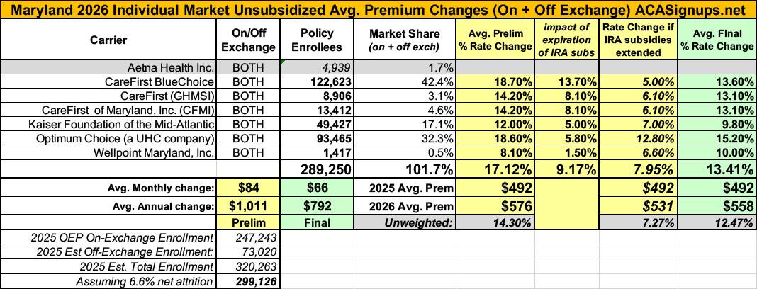 UPDATE 9/19/25: The Maryland Insurance Administration has published their final 2026 rate decisions for the individual market: