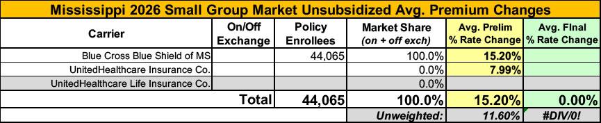 2026 Rate Changes - Mississippi: +36.8%; ~330,000 enrollees facing MASSIVE rate hikes starting in January