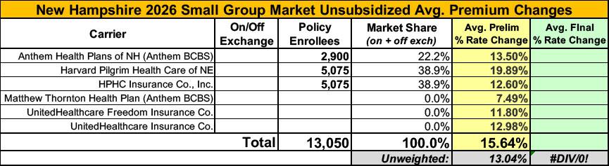 2026 Gross Rate Changes - New Hampshire: +22.4%; ~80,000 enrollees facing MASSIVE rate hikes starting in January (updated)